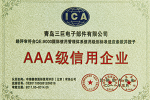 青島三巨電子部件有限公司獲得中瑞普信國際信用評價(jià)(北京)有限公司AAA級信用企業(yè);