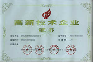 青島牧野模具有限公司獲得青島市科學(xué)技術(shù)局、青島市財政局、山東省青島市國家稅務(wù)局、青島市地方稅務(wù)局聯(lián)合頒發(fā)的高新技術(shù)企業(yè)證書;