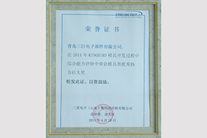 青島三巨電子部件有限公司在三星電子(山東)數(shù)碼打印機(jī)有限公司舉辦的KINGBIRD模具開發(fā)過程中綜合能力評價獲得模具類優(yōu)秀協(xié)力社大獎;
