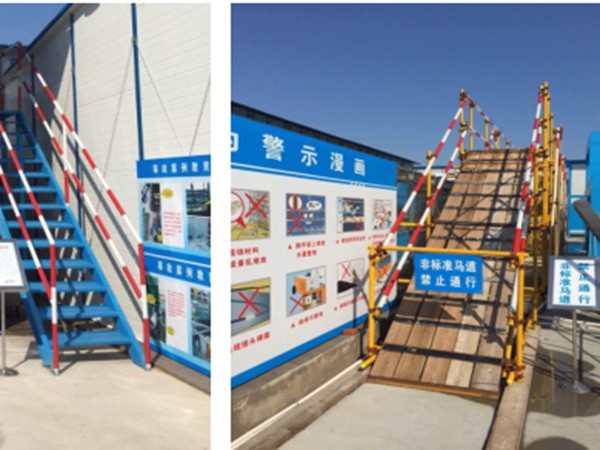 2、建筑安全體驗館讓工人了解洞口、臨邊設施的防護標準,了解實際施工中的防護措施。
